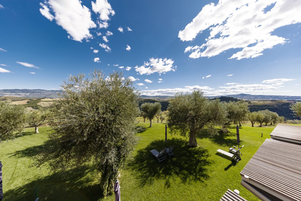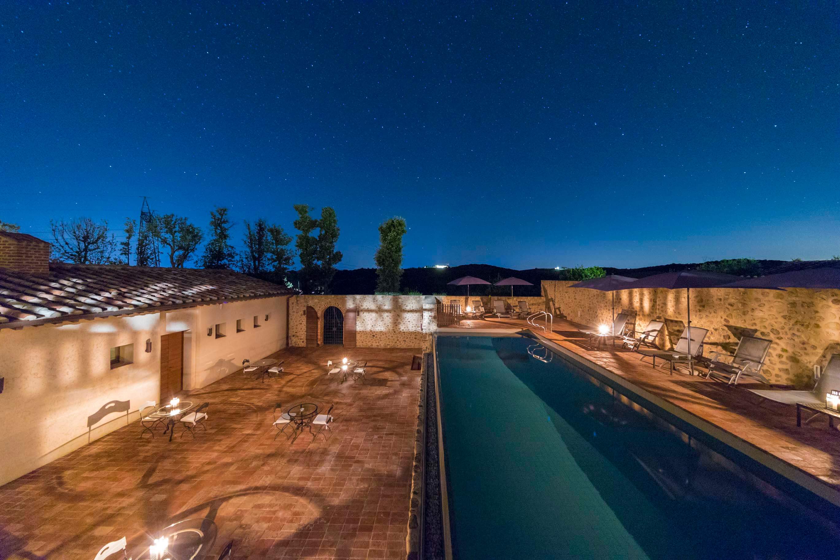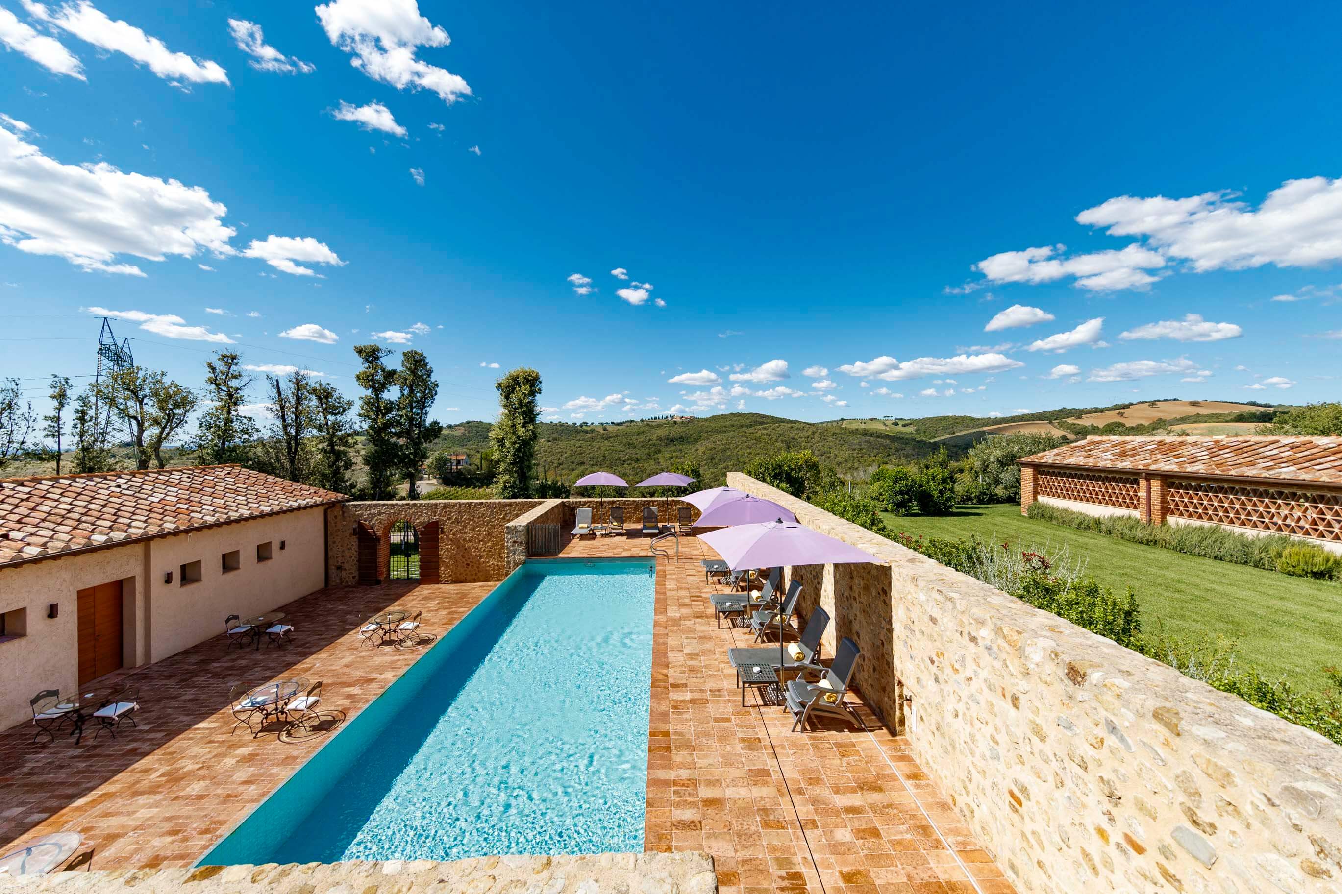 La struttura, come una pietra preziosa, è incastonata in un paesaggio fatto di vigneti coltivati a ciliegiolo e sangiovese e da oliveti. Ampi spazi verdi circondano la struttura e costituiscono una naturale zona relax. La piscina, che a cascata scende sulla corte sottostante, è totalmente inserita nell'ambiente. L'ampia e luminosa sala colazione, con un grande camino, consente di iniziare la giornata assaporando prodotti tipici del territorio. Gli ambienti sono dotati di ogni comfort, con soffitti a travi di legno e pavimenti in cotto toscano.